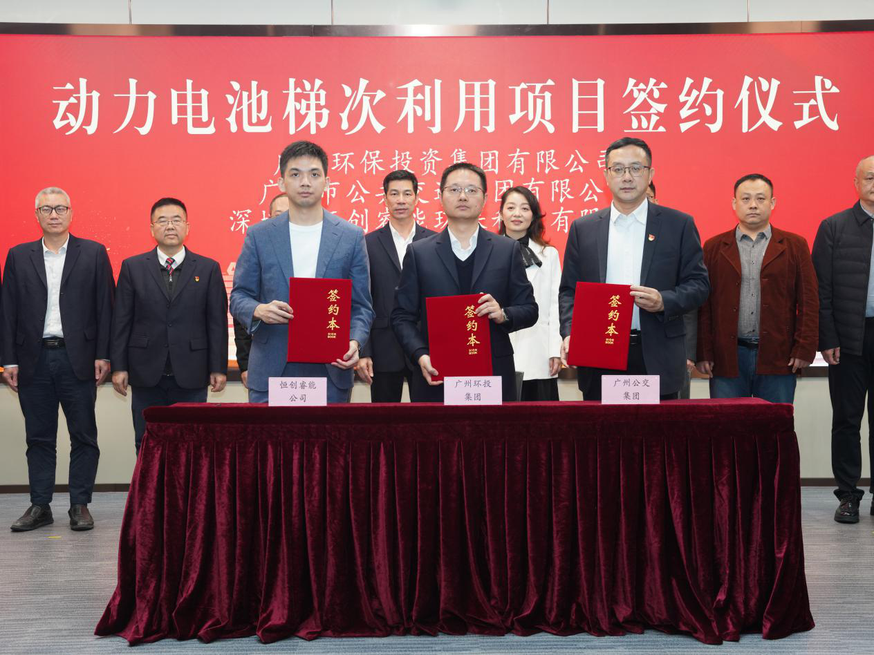 近日,廣州市公共交通集團有限公司與廣州環(huán)保投資集團有限公司、深圳市恒創(chuàng)睿能環(huán)保科技有限公司簽訂合作協(xié)議。廣東省工信廳工業(yè)節(jié)能和綜合利用處李敬斯處長,廣州市國資委黨委委員、總經(jīng)濟師郭黎;廣州公交集團黨委委員、副總經(jīng)理林殿盛,總經(jīng)理助理鄧志誠;廣環(huán)投集團黨委書記、董事長李水江,副總經(jīng)理周衛(wèi)東;深圳恒創(chuàng)睿能公司董事長陳志鵬等出席簽約儀式。