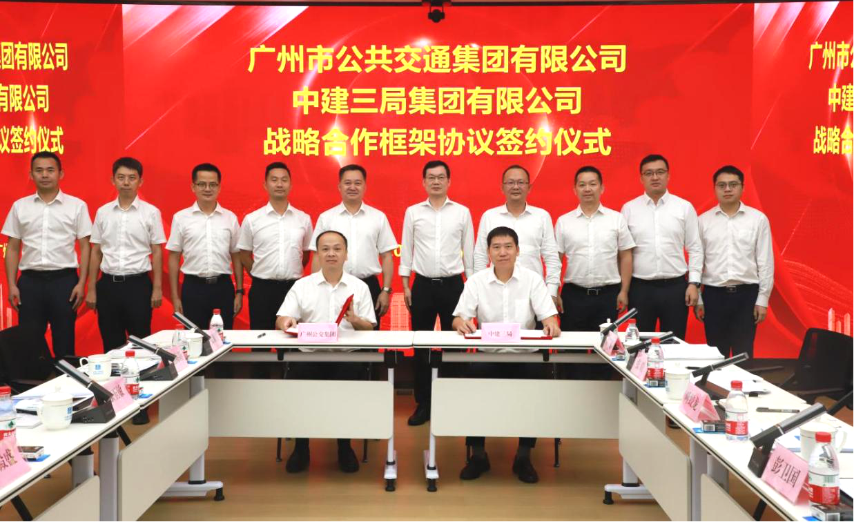 2023年9月26日下午,廣州公交集團(tuán)與中建三局舉辦戰(zhàn)略合作簽約儀式,開啟雙方企業(yè)攜手奮進(jìn)、共謀發(fā)展的合作新篇章。廣州公交集團(tuán)黨委書記、董事長、總經(jīng)理李小軍,黨委委員、副總經(jīng)理林殿盛;中建三局南方分局副局長彭衛(wèi)國、華南公司黨委書記、董事長吳建文等出席簽約儀式。
